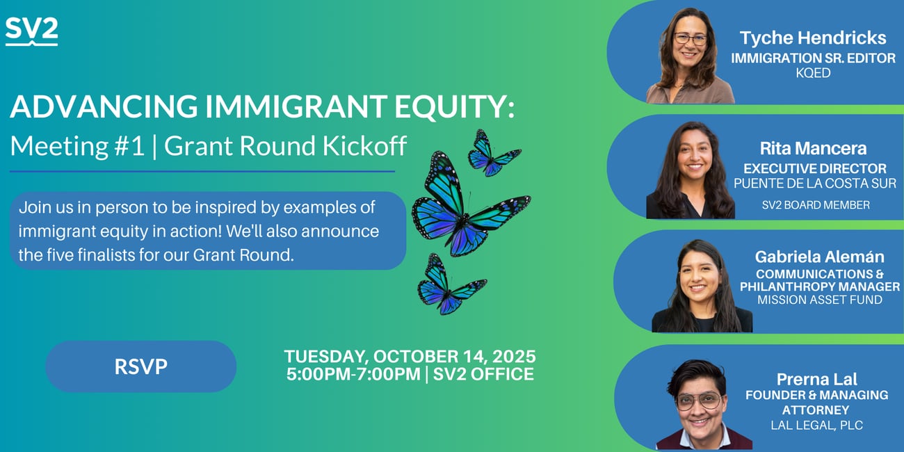 accelerating equity in the Bay Area through grantmaking and impact investing. For over 25 years, SV2 has been a trusted social innovation leader supporting locals to connect, learn, and practice giving in community alongside their peers.